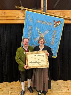 Nach der zweijährigen Pause war die Freude auf das diesjährige Jahreskonzert, dass am Samstag, 26.11.2022 in Hellengerst im Kreuzsaal stattfand, groß. Nicht nur die Musikantinnen und Musikanten genossen es wieder für ein großes Publikum zu spielen, sondern scheinbar Martin Bisle und Melanie Adelgoß waren auch die Zuhörer froh wieder Blasmusik in diesem Kontext zu hören und ein paar gesellige Stunden zu erleben, was der bis auf den letzten Platz besetzte Saal verriet. Im Rahmen des Jahreskonzerts wurden zahlreiche Ehrungen durchgeführt. 3 Musiker/innen wurden für ihre lange aktive Mitgliedschaft geehrt: Claudia Epple 25 Jahre, Sarah Schaber und Beat Hörmann 15 Jahre. Konrad Rist gab sein Amt als Fähnerich ab, dass er seit 1998 ausführte, wofür er ebenfalls eine Auszeichnung bekam. Gleich 5 junge Musikanten wurden für das Bestehen der D1 Prüfung geehrt und bekamen eine Urkunde und ihr Abzeichen überreicht: Simon Karg, Jonas Rist, Florian Rist, Linus Schwärzler und Tobias Weizenegger.