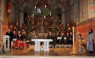 Nach zwei Jahren Pause wegen Corona klappte es in diesem Advent um das 36. Konzert dieser Art in Weitnau durchzuführen. In der prächtig geschmückten Weitnauer Kirche hatte sich eine zahlreiche Konzertgemeinde versammelt um den adventlichen Klängen und Gesängen zu lauschen. Das Einstimmen in das Singen und Musizieren gelang den jungen Bläsern der MK- Hellengerst-Rechtis auf Anhieb. Mit dem bekannten "Adventssatz Adeste Fidelis" war Adventsstimmung in den Kirchenraum eingezogen. In fröhlichem Wechsel entwickelte sich nun in einer guten Stunde ein abwechslungsreiches Konzert in dem die Illertaler Saitenmusik mit gut gewählten Stubenmusiksätzen ebenso brillierte, wie mit ihrem Dreigesang zu Gitarre. Da passten zur vorweihnachtlichen Stimmung die Allgäuer Jodlersätze der Jodlergruppe Freundschaft mit den Wohltuenden Bass- und Tenorstimmen hervorragend dazu. Den feinen Unterschied zu Gesang und Blasmusik machte Andrea Maucher aus Immenstadt an der Harfe, die mit Ihren sauberen klaren Tönen Freude und die Stimmung des Weihnachtsfestes ankündigte. Mit adventlichen Gedanken führte Peter Freytag durch den schönen Abend, der mit dem Satz "Wir sagen Euch an den lieben Advent" mit einem Bläsereinspiel und dankbarem Applaus endete."