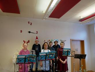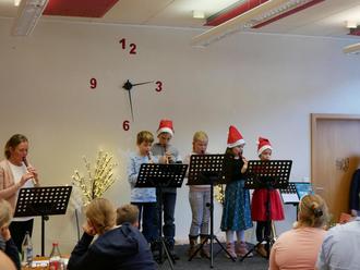 Anschließend folgten die Jungmusikanten, die zusammen mit ihren Ausbildern an Querflöte, Klarinette und Flügelhorn einige Stücke und Weihnachtslieder vorbereitet hatten. Den Abschluss des Konzertes übernahm das „Mini-Orchester“: In den vergangenen Wochen hatte der musikalische Nachwuchs in dieser Formation zum ersten Mal das Zusammenspiel mit anderen erprobt. Auch das Publikum konnte in einer Rhythmus-Übung sein Talent unter Beweis stellen.