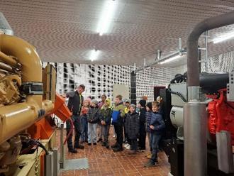Nachdem wir im Unterricht das Thema Wasser behandelt hatten, besuchten die beiden vierten Klassen der GS Buchenberg am Dienstag, den 12.11.2024, die Fernwasserversorgung Oberes Allgäu. Nach unserer Ankunft bei der Betriebszentrale in Ortwang begrüßte uns Wassermeister Heiko Straka. Im Eingangsbereich staunten wir dann alle über einen freistehenden Wasserhahn, aus dem frisches Trinkwasser lief! Ein paar schlaue Kinder konnten uns dann aber zum Glück aufklären, wie das Ganze funktioniert!!! Dann zeigte uns Herr Straka im Hauptgebäude einen kurzen Infofilm über die Wasserversorgung. Dort bekamen wir zur Stärkung eine Brezel und natürlich ein Glas frisches Trinkwasser! Weiter ging es in den Keller und wir besichtigten die beiden Notstromaggregate, die mit riesigen Dieselmotoren angetrieben werden, was uns sehr beeindruckte! Danach konnten wir gleich neben der Betriebszentrale einen der acht Tiefbrunnen besichtigen und Herr Straka erklärte uns, wie das Grundwasser aus dem Boden in unsere Wasserhähne gelangt. Unser Bus brachte uns dann nach Burgberg und von dort aus wanderten wir zum Hochbehälter am alten Weinberg. Dort besichtigten wir im Keller die drei riesigen Wasserleitungen (Rohre mit bis zu 80 cm Durchmesser), die das Wasser in Richtung Kempten, Oy-Mittelberg und Stiefenhofen an 200.000 Endverbraucher transportieren. Der Höhepunkt der Besichtigung war dann der Hochbehälter selbst, der in zwei Becken aufgeteilt ist und insgesamt bis zu 9000 Kubikmeter Wasser fassen kann. Danach machten wir eine kurze Brotzeitpause, bekamen noch ein kleines Überraschungsgeschenk und wanderten wieder zurück zum Bus.