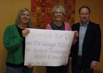 Nachdem in der Vorweihnachtszeit in Wengen eine erfolgreiche Dorfweihnacht mit Weihnachtsmarkt stattfinden konnte, freuten wir, die Kneipp Kindertagesstätte Kleinweiler, uns sehr, dass wir davon profitieren. Marion Fuchs vom TSV Wengen überbrachte die Spende von 1245€ an uns. Deshalb möchten wir uns bei allen bedanken, die dieses tolle Projekt auf die Beine gestellt haben und auch an alle die eine Spende für den Weihnachtsmarkt beigesteuert haben. Nur so konnten wir am Ende so eine tolle Spende erhalten.