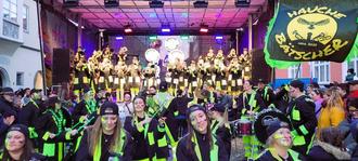 Isny/Weitnau – Korbinian Theobald ist fix und foxi:“Das war echte Arbeit!“ keucht er nach dem Auftritt seiner „Hauchebätscher“ und lacht dann:“ Aber es war auch richtig geil!“ Zwanzig Minuten lang ist er gehüpft, hat getanzt, seine Truppe dirigiert und ganz Isny elektrisiert:“Unsere erste große Performance,“ krächzt Korbinian,“ so viele Leute! So eine Stimmung! Unfassbar!“ Die „Hauchebätscher“ aus Weitnau, Bayerns jüngste Guggenmusiker, fünfzig Mann und Mädchen stark, im siebten Himmel:“ Wer läßt mei Muattr fetza? D‘ Hauchebätscha!“Ihr Motto war noch oft zu hören, in dieser unüberhörbaren Februarnacht in Isny.