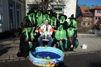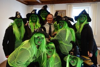 Beim Rathaussturm in Weitnau wurde Bürgermeister Florian Schmid erst einmal seine schönste Krawatte abgeschnitten. Doch nicht genug. Die Hexen fragten, wo man denn in Weitnau am besten zum Baden geht. Klar doch, ins gemeindliche Freibad in Seltmans. Doch zuvor musste Bürgermeister Schmid erst einmal eine Kneipp- und Wellnesskur über sich ergehen lassen. Er soll ja schließlich im Freibad der schönste Mann von Weitnau und der schönste Bürgermeister vom Landkreis sein.