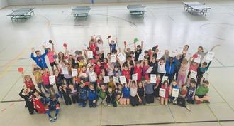 Am neuen Schulsportwettbewerb nahmen 75 Dritt- und Viertklässler der Grundschule Buchenberg in Kooperation mit der Abteilung Tischtennis des TSV Buchenberg teil.