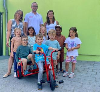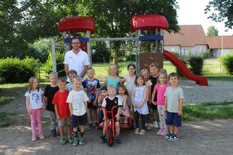 Vorstand Bernd Trottler konnte nun je ein Spielgerät an die Kindergärten in Großlellenfeld und Arberg übergeben.