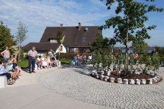 Die 36 neuen Erstklässler der Eichelbergschule Arberg erlebten einen besonderen Schulanfang. Bürgermeister Jürgen Nägelein begrüßte die 36 Mädchen und Jungen aus dem gesamten Gemeindegebiet Arberg und den Nachbarorten Wiesethbruck und Voggendorf sowie das Lehrerkollegium mit Schulleiterin Heidrun Townson an der Spitze. Er überreichte an alle jungen Lernenden einen Obstbaum, den sie im Garten ihrer Eltern oder Großeltern einpflanzen sollten. Die Kinder durften zwischen Apfel-, Birnen- oder Zwetschgenbaumsetzling wählen. Bei der Aktion waren auch die Zweit- und Viertklässler im Pausenhof anwesend, für alle Schüler der Eichelbergschule hatte der Elternrat ein reichhaltiges Kuchen- und Getränkebuffet aufgebaut. In einer kurzen Rede wandte sich Herr Nägelein an die versammelte Schüler-, Eltern- und Bürgerschaft und wies in diesem Zusammenhang auf die Funktion der Bäume und erläuterte den Lebensweg der Bäume von der Pflanzung bis hin zur jährlichen Blüte, der Bestäubung durch die Bienen und schließlich dem Ernten der wohlschmeckenden Früchte.