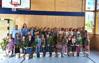 Die neuen Arberger ABC-Schützen freuten sich über die Baumsetzlinge