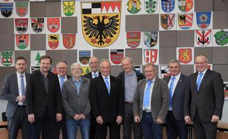 Bei der Spendenübergabe im Landratsamt Ansbach (von links): Landrat Dr. Jürgen Ludwig, Bürgermeister Christoph Schmidt, Chordirigent Friedrich Wörrlein, Robert Scholl vom Kirchenvorstand Rügland sowie die Chor-Vertreter Franz Winter, Rudolf Tischer, Bürgermeister Wolfgang Schicktanz, Werner Hammerl, Jürgen Nägelein und Vorsitzender Klaus Miosga.