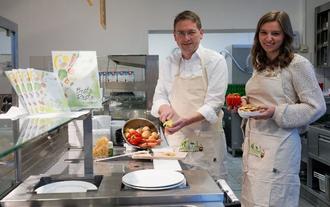 Aus Lebensmittelresten werden leckere Gerichte - Landrat Dr. Jürgen Ludwig und Klimaschutzmanagerin Lena Navarro Ortiz freuen sich, dass viele Bürgerinnen und Bürger ihre Rezeptideen für das neue Rezeptbuch zur Verfügung gestellt haben.