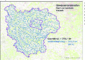 Abbildung 1: Die Abbildung zeigt die vorläufigen Ergebnisse der randstreifen- pflichtigen Gewässer in der Stadt u. im Landkreis Ansbach (Stand: Januar 2023)