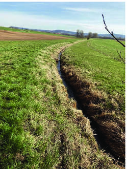| - | an eindeutig „grünen Gräben“ mit klarem Grasbewuchs, die nur so selten wasserführend sind, dass sie kein Gewässerbett aufzeigen, |