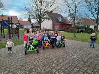 Weiterhin gab es vom Elternbeirat als Überraschung für die Kinder zwei neue Kettcars und neue Laufräder von Berg für den Garten.