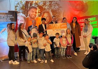 Im Rahmen der Aktion „Ansbacher Vereinsträume“ von Reifen Lorenz hat der Förderverein des Kindergartens Großlellenfeld ein neues Trampolin für den Kindergarten gewonnen. Bei insgesamt 75 eingereichten Träumen und über 12000 Stimmen im Voting konnte sich der Förderverein einen Platz unter den TOP 20 sichern. Die Jury aus Olympiasiegerin Malaika Mihambo (4. h. l.), Sophia Sauerhöfer (Vorsitzende Stadtjugendring Ansbach; 6.h.l.) und Gastgeber Maximilian Lorenz (Geschäftsführer Reifen Lorenz;5.h.l.) wählte aus den Träumen mit den meisten Stimmen drei Sieger, darunter auch den Förderverein, aus. Am 27.3. war die große Preisverleihung in der Ansbacher Filiale von Reifen Lorenz und die Kinder, Erzieherinnen sowie die Vorsitzenden des Fördervereins konnten sich über den Preis in Form eines Schecks freuen. Sobald das Trampolin im Kindergarten aufgebaut ist, wird es noch eine offizielle Einweihung zusammen mit der Firma Lorenz geben.