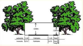 Über Geh-und Radwegen muss eine lichte Höhe von mindestens 2,50 m und über Fahrbahnen sowie Feuerwehrzufahrten eine Höhe von mindestens 4,50 m unbedingt freigehalten werden.
