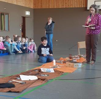 Am letzten Schultag vor den Osterferien feierten die Grundschüler eine gemeinsame Andacht an Leben und Sterben Jesu. In der Turnhalle konnten die Kinder anhand von 14 Stationen die Heilsgeschichte Jesu nachempfinden. Angefangen vom letzten Abendmahl von Jesus und seinen Jüngern bis hin zur Begegnung von Jesus mit den Emmaus-Jüngern sollen die Kinder erfahren, dass die Passionsgeschichte nicht in Leid und Tod endet, sondern die Auferstehung und das Leben als Ziel hat. Bestens umgesetzt in bunten, aussagekräftigen Bodenbildern von Religionspädagogin Kerstin Huber konnten die Kinder Jesu ‘Leben nachempfinden.