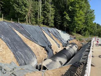 Im Juni wurde eine neue Löschwasserzisterne für die Ortsteile Kolbersbach und Lesmannsried mit ca. 100 m³ Fassungsvermögen errichtet. Geplant wurde das Bauvorhaben vom Ing. Büro Schanderl aus Teisnach, den Zuschlag bekam nach Ausschreibung die Firma Weikl aus Bodenmais. Die Gemeinde Drachselsried entschied sich die Ausführungsvariante während der Ausschreibung offen zu halten, sodass der Bieter selbst wählen konnte, ob die neue Zisterne als Kunststoffbehälter oder in Betonbauweise angeboten wird. Ziel war es mit einer variablen Ausschreibung die günstigste Variante und eine zeitgerechte Ausführung zu ermöglichen. Schlussendlich wählte die Fa. Weikl eine Errichtung als zylindrischer Kunststofftank mit einem Nenndurchmesser von ca. 2,7 m und einer Länge von etwa 18 m.