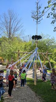 Im Kinderhaus wird es nie langweilig. Die Krippe veranstaltete ein internes Maifest und lud die Kinderhauskinder ein. Natürlich durfte das Maibaum aufstellen bei so einem Event nicht fehlen. Das war ein Spaß! Begleitet von toller Bayerischen Musik wurde um den Montessori-Maibaum getanzt.