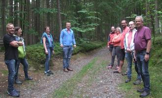 Auf Besichtigungstour für einen Mobilfunkmasten sind Bürgermeister Johannes Vogl (4. V. l.) und 2. Bürgermeister Rudi Hohlneicher (r.) mit Asbacher Bürgern. (Foto: Reith)