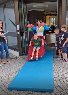 Der „Rauswurf“ mit der Schubkarre war ein Riesenspaß für die Kinder