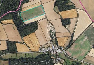 Auf dem Grundstück befindet sich ein Hochspannungsmast, an den der Batteriespeicher angeschlossen werden soll. Somit werden keine größeren Leitungsarbeiten an gemeindlichen Wegen erforderlich.