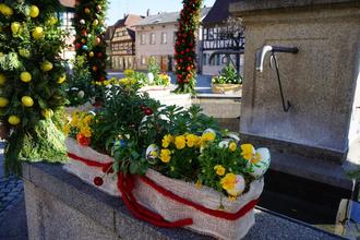 Von vielen engagierten Frauen und Helfern wurde in diesem Jahr wieder ein herrlicher Osterbrunnen um den Überkum in Baunach errichtet.