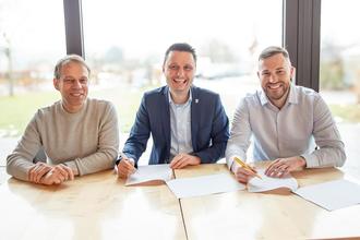 Vertragsunterzeichnung (v.l.n.r. Christoph Bantle – Geschäftsführer, Tobias Roppelt – 1. Bürgermeister, Toni Messingschlager – Mitglied der Geschäftsführung
