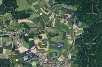 Die Gemeinde Reckendorf beabsichtigt die Aufstellung des vorhabenbezogenen Bebauungsplanes „Freiflächen-Photovoltaikpark Reckendorf“ an verschiedenen Flächen im Gemeindegebiet. Auf diesen Grundstücken soll ein sonstiges Sondergebiet mit der Zweckbestimmung „Freiflächen-Photovoltaikanlage“ ausgewiesen werden. Die betroffenen Flächen sind im beigefügten Lageplan blau markiert: