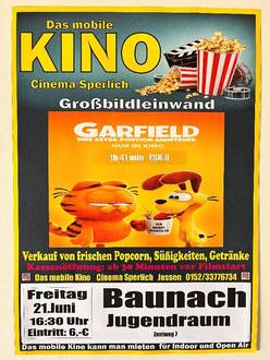Am 21.06.2024 kommt das mobile Kinderkino Sperlich nach Baunach und strahlt bei uns im Jugendhaus den Film Garfield 4 aus.