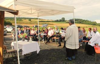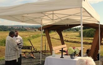 Als symbolisches Ende der Flurbereinigung wurde eine neue Sitzgelegenheit mit einem historischen Pflug bei einem kleinen Festgottesdienst von Pater Vincent eingeweiht. Der Standort zwischen Baunach und Daschendorf wurde hier bewusst gewählt, als schönes Zeichen zum Abschluss dieses langen Verfahrens.