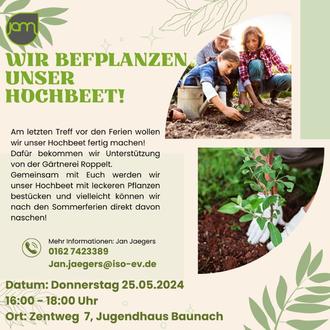 Gerne würden wir auch am Geracher Jugendtreff ein Hochbeet aufbauen. Falls sich jemand mit handwerklicher Begabung angesprochen fühlt, kann er oder sie sich gerne bei Jan Jaegers melden.