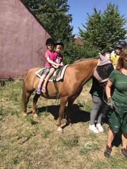 Ein aufregendes Kindergartenjahr geht zu Ende. Zum Abschluss haben wir vor den Ferien einen gemeinsamen Ausflug zum Erlebnisbauernhof der Familie Leyh in Losbergsgereuth gemacht. Dort konnten die Krippen- und Kindergartenkinder zusammen mit ihren Eltern und dem Kindergartenpersonal den Bauernhof kennenlernen. Jedes Kind durfte reiten, was für viele ein Highlight war. Danach ging es in den Kuhstall. Neben Kühe füttern und Silo schaufeln oder kehren, konnten die Kinder auch den Melkroboter anschauen. In der Mittagspause gab es für alle leckere Bratwürste. Diese wurden, wie auch die Führung auf dem Bauernhof, vom Elternbeirat gesponsert. Nach so einem schönen Abschluss freuen wir uns auf das kommende Kindergartenjahr!