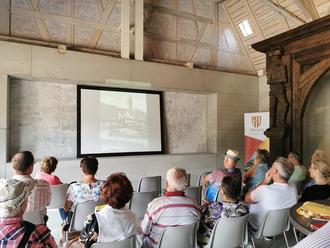 Unser fachkundiger Ehrenbürger und Nachtwächter Reinhold Schweda hatte eigens für diesen Tag eine kurzweilige Präsentation mit Bildern vorbereitet und trug spannende und lustige Geschichten rund um die Hölzernen Männer und die Zehntscheune vor.