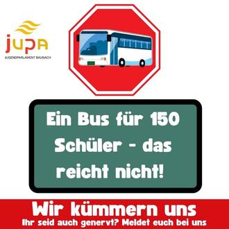 Das Jugendparlament, Sophia Schmidt, Tobias Roppelt, StadtBaunach und der Jugendbeauftragte haben dieses Problem erkannt und sich darum gekümmert. Seit dieser Woche soll nun ein zweiter Bus eingesetzt werden, um die Situation zu verbessern. Wir hoffen, dass dieser Schritt den Schulweg für alle langfristig erleichtert. Sollte das Problem weiter bestehen, werden wir nicht zögern, erneut aktiv zu werden und werden uns weiterhin für die Baunacher Jugend starkmachen!