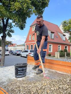 In Absprache mit unseren Gärtnern und dem Nachhaltigkeitsbeauftragten wurde auf den Staudenbeeten an der Überkumstraße diese Woche Mineralmulch aufgebracht.