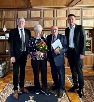 Auf dem Bild von links nach rechts: Landrat Johann Kalb, Jubelpaar Margot und Georg Wild, Erster Bürgermeister Tobias Roppelt