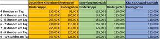 Zum Vergleich der Kindergartengebühren wurde der Kindergarten Johanniter-Kinderinsel in Reckendorf und die Kita St. Oswald verwendet.