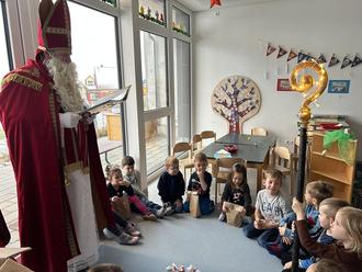 Nachdem die Kinder ihr einstudiertes Lied voller Stolz vorgeführt hatten, bekam jeder ein kleines Geschenk vom Nikolaus mit ein paar persönlichen Worten überreicht. Bevor der Nikolaus sich verabschiedete, durften die Kinder sogar noch den Bischofsstab halten.