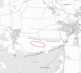 Übersicht Lage des Vorhabens (rot umrandet) ohne Maßstab