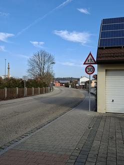 Diese Geschwindigkeitsregelung wurde erweitert, somit beginnt das "Tempo 30" ab sofort in Höhe der Ziegeleistraße 3, direkt nach der Ausfahrt aus dem Kreisverkehr (siehe Foto).