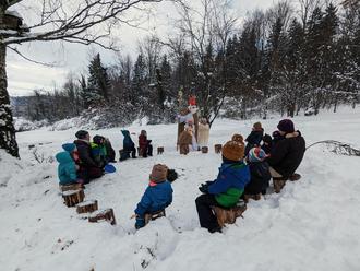 Der Advent im Wald war für uns eine Zeit, in der wir unsere Gemeinschaft besonders in den Vordergrund gestellt haben. Unser Adventskalender war lebendig – jeden Tag um 11 Uhr besuchte uns eine der Familien der Waldkinder, brachte Tee oder Punsch mit in den Wald und ein Buch oder Lieder, Gitarre und Reime zu den Themen Advent, Weihnachten und Winter. Die Kinder lauschten den Geschichten, sangen eifrig mit und genossen das gemütliche Beisammensein. Wenn der Wald durch Schneebruchgefahr gesperrt war, beschäftigten wir uns draußen auf der Wiese, bauten Schneemänner oder Pferde aus Schnee, fütterten die Schafe unseres Försters oder fuhren mit unseren Rutscherln den Berg hinunter.