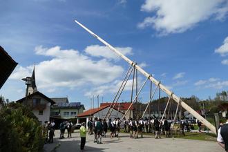 Am Sonntag, den 30.April konnte nach vierwöchigem, aufopferungsvollem „Wachter-Einsatz“ der Bergener Aktiven der Neukirchner Maibaum wieder wohlbehalten zurück gebracht werden. Für 210 Liter Freibier und eine Brotzeit sowie eine gemeinsame Nachfeier wurde der Baum wieder an die Neukirchner Trachtler heraus gerückt. Am Neukirchner Dorfplatz wurde der knapp 26m hohe Maibaum mit reiner Muskelkraft und ohne zusätzliche Sicherungsmaßnahmen in die Höhe gestemmt. Fast dreieinhalb Stunden dauerte die Zeremonie, bis es für die Aufstellmannschaft, die zu großen Teilen aus den Bergener Aktivenbuam bestand, die wohlverdiente Brotzeit gab. Nach der Stärkung tanzten die beiden Trachtenvereine noch gemeinsam das Mühlradl unter dem Maibaum und ließen den anstrengenden Tag gemütlich ausklingen.