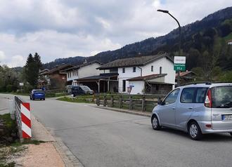 Kurz vor der Brücke über die Weißache endet abrupt der Radweg, die Kreisstraße muss überquert werden. Für die Autofahrer in beiden Richtung ist das völlig unvorhersehbar.
