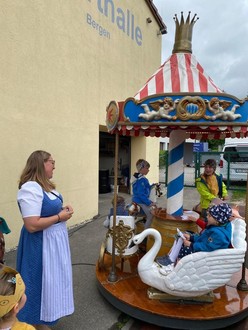 Für die Kinder wurden verschiedene Spielstationen, wie z. B. eine Tombola, Kinderschminken, Dosenwerfen, Brezenschnappen und Hammern, aufgebaut. Auf dem Hartplatz gab es ein Karussell und eine Bobbycarstrecke. Besonders beliebt waren auch die Holz-Bauklötze von Franz Lorenz aus Fridolfing.