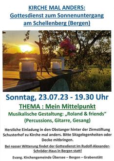 | 19.30 Uhr | Kirche mal anders – Gottesdienst zum Sonnenuntergang |