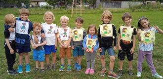 Badetag mit Wasserspiele, Besuch auf einer Baustelle mit Baggerbesichtigung, Schatzsuche im Wald, ein Fußballturnier mit gemalten Trikots, eine Plattlerprobe im Trachtenheim und vieles mehr.