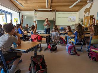 Zur Vorbereitung unserer Projektwoche in der vierten Klasse der Grundschule Bergen zum Thema "Alltagskompetenzen" besuchte uns Frau Gstatter. Sie zeigte uns eine interessante, informative PowerPoint-Präsentation, bei der wir viel über das Leben und Arbeiten auf dem Bauernhof erfuhren. Zu einem Film hatte sie Fragen vorbereitet, die wir alle beantworten konnten. Zum Abschluss gab es noch leckeren Kakao, der uns von der Molkerei Berchtesgadener Land gespendet wurde. Vielen herzlichen Dank an Frau Gstatter für Ihre Mühe!