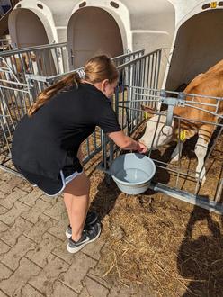 Am 21.06.2023 besuchte die vierte Klasse der Grundschule Bergen den Naturland-Hof der Familie Gstatter. Herr Gstatter zeigte uns die Maschinen, die auf einem Bauernhof gebraucht werden und erklärte die Biogas-Anlage, durch die der Hof seine gesamte Energie selbst produzieren kann und sogar noch umliegende Häuser versorgt. Frau Gstatter führte uns zu den Kälbchen, Jungkühen und Milchkühen. Wir konnten den Tieren beim "Wellness" zuschauen, denn an diesem heißen Tag wurden sie mit einem feinen Sprühnebel berieselt, ließen sich ausgiebig von den Kratzmaschinen bürsten und standen im Stall schön kühl durch Ventilatoren. Nach der spannenden Führung durften wir die Kälbchen füttern und tränken. Das Jüngste war gerade zwei Tage alt. Im Anschluss daran stellten wir unsere eigene Butter her. Wir aßen Bauernbrot, bestrichen mit unserer Butter, Kresse, Schnittlauch und Käse vom Frial-Hof. Zum Abschluss hatte sich Frau Gstatter noch ein Quiz überlegt und wir bekamen Sonnenbrillen der Molkerei Berchtesgadener Land geschenkt. Ein herzliches "Vergelt's Gott" an Familie Gstatter für Ihre Geduld und die tolle Vorbereitung! Das war ein gelungener Schultag!