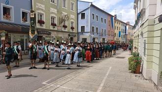 Bei perfektem Gaufestwetter nahmen vergangenen Sonntag ca. 90 Bergener Trachtler am 133. Gaufest des Gauverbandes 1 in Teisendorf teil. Pünktlich um 9 Uhr zur Aufstellung des Kirchenzuges hörte der erfrischende Regen auf und wir konnten trockenen Fußes zum Feldgottesdienst marschieren. Im Anschluss an die feierliche Feldmesse folgte der große Festumzug durch die Teisendorfer Marktstraße. Viel Applaus erhielten unsere Röckifrauen mit ihren farbenfrohen Schürzen und auch unsere Historische Gruppe bekam wie immer viel Beifall. Wir können stolz auf unsere Bergener Tracht sein – halten wir sie in Ehren!