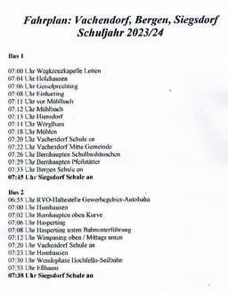 Nachfolgend der Fahrplan für die Schulbusse im kommenden Schuljahr. Die Schüler sollten mind. 5 Minuten vor der geplanten Abfahrt an der Haltestellen sein.