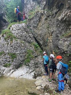 So fand am 29. Juli 2023 das Abenteuerklettern durch die landschaftlich reizvolle Weißachenschlucht mit der Bergwacht Bergen statt.